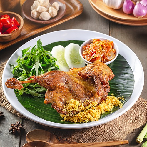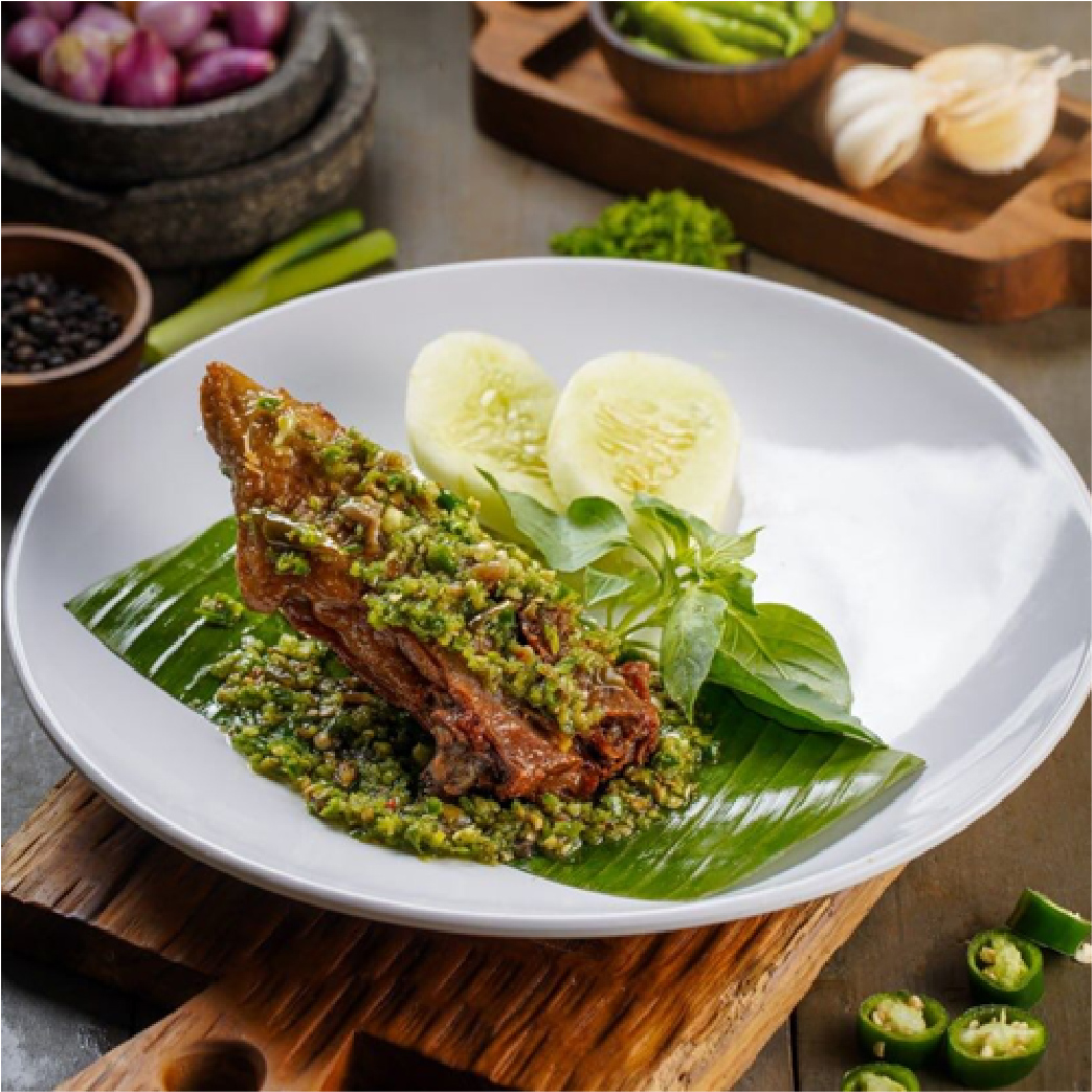 Bebek Goreng Yang Dilumuri Bumbu Istimewa Cabai Ijo, sensasi pedasnya bikin bibir "njedhink"