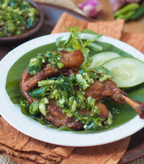 Bebek Goreng Yang Dilumuri Bumbu Istimewa Cabai Ijo, sensasi pedasnya bikin bibir "njedhink"