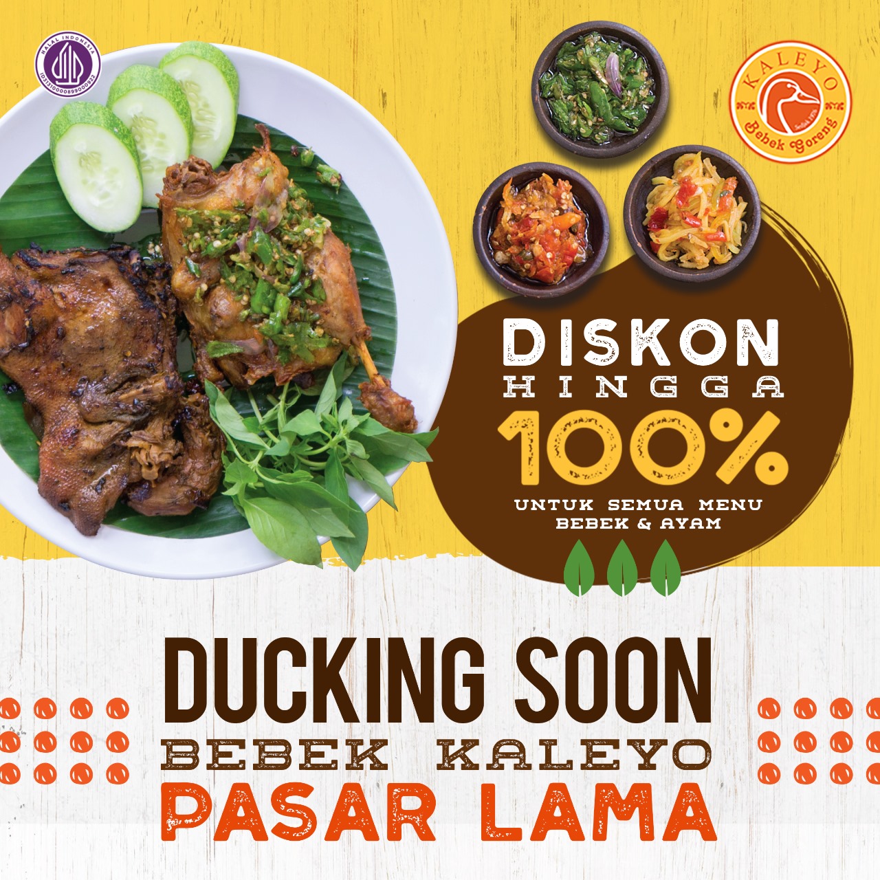 Bebek Kaleyo akan hadir di Pasar Lama pada Oktober 2024! Nantikan kejutan Grand Opening dengan diskon spesial hingga 100% untuk menu bebek dan ayam. Tunggu tanggalnya, dan pastikan kamu jadi bagian dari momen spesial ini!